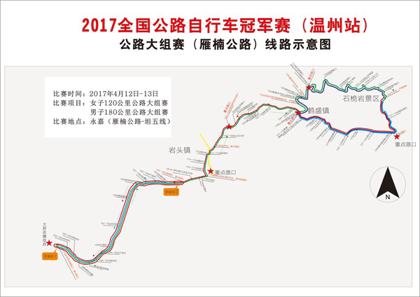 4月13日女子組:巖頭鎮(zhèn)溪南村(41省道南復(fù)線)燈控口往西1公里處設(shè)起點(diǎn)→41省道南復(fù)線大若巖方向→大若巖黃潭口折返→41省道南復(fù)線巖頭方向→溪南村燈控口→楠溪江二橋→左轉(zhuǎn)雁楠公路→鶴盛小學(xué)靠左轉(zhuǎn)→白馬殿→石桅巖景區(qū)→霞嶺根村→雁楠公路(黃坑隧道)右轉(zhuǎn)→雁楠公路(鶴盛小學(xué))右轉(zhuǎn)→鶴灣村→白馬殿→石桅巖景區(qū)→霞嶺根村→雁楠公路(黃坑隧道)右轉(zhuǎn)→雁楠公路→楠溪江二橋→溪南村終點(diǎn)。記者 富玲燕 通訊員 呂清清