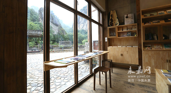 和這個系列的設計一樣,全部出自陳憲敏之手。盡管他一直說自己是個業(yè)余的設計師,僅有的經(jīng)驗來自于過去的幾家民宿。輕輕推開質(zhì)樸木門,幽靜的庭院里,三三兩兩的人影相伴。玻璃窗內(nèi),安靜閱讀角落,明燈、木桌、藏書,伴著咖啡香氣,在書中窺見時光悠然。合上書頁,依稀可遠眺楠溪江山景。在這樣一個下午,記者也只想捧出一本書,品嘗一杯茗,坐享風中那淡淡的幽香和微涼的爽意,一切都是如此的愜意,寧靜。
