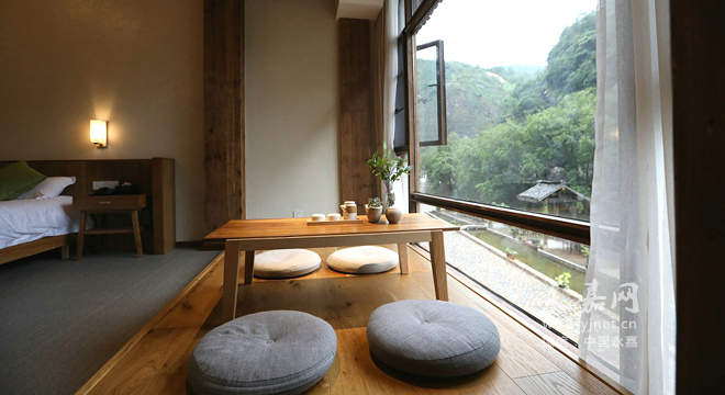 所以,每一次民宿選址,都是在楠溪江著名的風景點,如石桅巖、獅子巖、陶公洞、麗水街等。做到推窗即有景,視野開闊,還要與景區(qū)保持一定的距離,鬧中取靜。像“楓驛”可觀紅楓、“1958”背靠石桅巖、“12客居”在12峰、“水車之戀”在麗水街,處處有景可觀!伴羯帷笔顷悜椕舸蛟斓牡谌幟袼,便是滿滿的楠溪元素。青瓦白墻、田園矴步、盈盈池水、美人靠長廊、古樹老屋等永嘉元素錯落在庭院里,盡顯中式庭院的風格特點。不久后,陳憲敏又聯(lián)合幾位股東,在楠溪江游人無數(shù)的獅子巖旁打造了一處新的民宿“江楓漁火”,民宿正對著楠溪江獅子巖一帶的山水風光,臨窗而歇,蜿蜒飄逸的楠溪江水,綿綿流動,楠溪將如蹁躚而來的仙子,擁人入懷。第五家“1958”,是一幢廢棄的民房改造而成的古典吉他主題民宿。原系下岙水庫水電站的職工宿舍,建于1958年,距離石桅巖景區(qū)不過數(shù)百米遠。它的特別之處是,房間沒有電視信號、沒有網(wǎng)絡,只有抬頭滿天星和周圍的蟲鳴鳥叫……