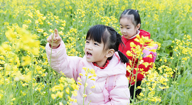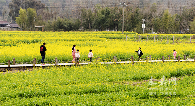 據(jù)花田負責人金建樂介紹,巖坦花田占地400畝,分為三個區(qū)域,一區(qū)以春天的音符為主題,占地230畝,2019年10月栽種了一批不一樣的油菜花籽。種子是省農(nóng)科院特意培育出來的,可根據(jù)氣溫的變化提前開花,花期可以推遲15天,整個花期有45天,可以讓年底和正月里回家過年的人欣賞觀光。