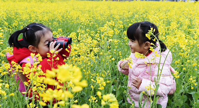 往年的油菜花都要等到三、四月才進入花期,近日有熱心市民發(fā)現(xiàn),巖坦鎮(zhèn)東岙村的油菜花田已悄無聲息地綻放,展示出了最美的色彩。花田間,大人帶著孩子在賞花嬉戲,或拍照留影,或亭中小憩,盡情享受這暖冬帶來的美景。