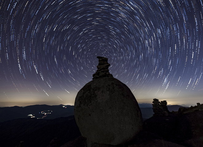 十年前第一次登頂過南正尖的我縣攝影愛好者金肖武,在山上就看到過巨石上堆砌著一堆堆大小不一的石子。據(jù)猜測,大約是來這里的香客和游人每年都會來加一塊石頭,而且石子的堆砌方向指往東方的太陽,長此以往,就形成瑪尼堆,象征“吉祥”“平安”。