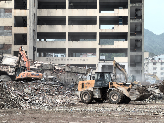記者留意到,為了做好建筑垃圾消納,承接此次拆除工作的溫州正潤建設(shè)公司在現(xiàn)場設(shè)置了建筑垃圾分類處理點。對拆后產(chǎn)生的鋼筋、水泥塊、磚渣等廢棄材料進(jìn)行粉碎、加工,生成可以再利用的建筑材料。將建筑垃圾消納和資源的再生利用有力結(jié)合,利用率可到60%左右。