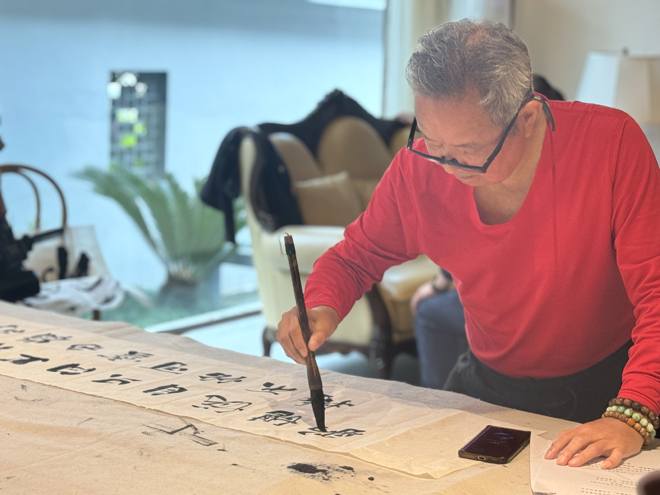 藝術(shù)家一行先后來到百丈瀑景區(qū)、十二峰景區(qū)進(jìn)行采風(fēng)活動(dòng),在青山綠水間盡情地感受大自然的恩賜。隨后藝術(shù)家一行來到四季云嵐開展創(chuàng)作交流。在墨香氤氳的筆會(huì)現(xiàn)場,藝術(shù)家們揮灑筆墨才情。畫家們通過描繪山川、竹林等元素來體現(xiàn)楠溪江山川林壑的自然之美。書法家們走筆如龍,或行或楷,寫下《詔問山中何所有賦詩以答》詩詞及“山水云嵐”四字書法等作品。