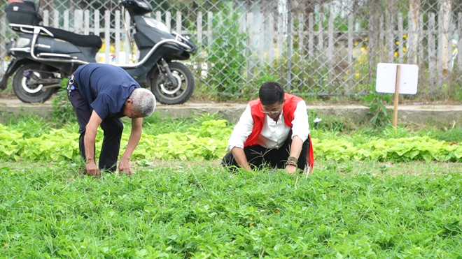 愛心菜園的打造源于該村黨總支書記胡方曉和鄉(xiāng)賢肖德克的一次閑談,為了讓村里老人吃得更安全,同時(shí)也為了豐富村民的業(yè)余生活,胡方曉計(jì)劃利用3畝左右的村集體用地來打造愛心菜園,肖德克立即響應(yīng)并捐了100斤化肥。肖德克說:“這是好事,我當(dāng)然要支持,當(dāng)天立刻花了240元買了100斤化肥送給村里,菜園是一定要種植的,這樣老人吃得放心且踏實(shí)!薄拔覀兇鍍晌峁┓N子和化肥,村兩委人員、黨員以及部分愛心人士一起參與進(jìn)來,讓村民發(fā)揮所長,還可以豐富自己的業(yè)余生活!焙綍孕牢康。