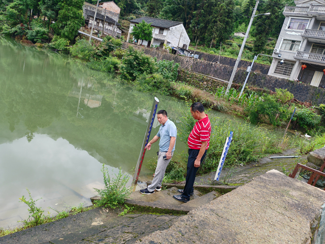 同時,在園基水庫內(nèi),村干部也正積極開展山塘水庫隱患排查整治工作,查看水庫運行水位情況、溢洪道是否有阻塞、輸水涵管是否完好等情況。并及時將現(xiàn)場檢查情況上傳至聯(lián)絡(luò)群以便記錄。該村黨總支書記陳良說,近段時間降雨頻繁,水庫的巡查頻率也相應(yīng)增加。目前水庫巡查員每天巡查一到兩次,村兩委輪班不定時巡查,遇到大暴雨水庫的巡查頻率也會相應(yīng)增加。