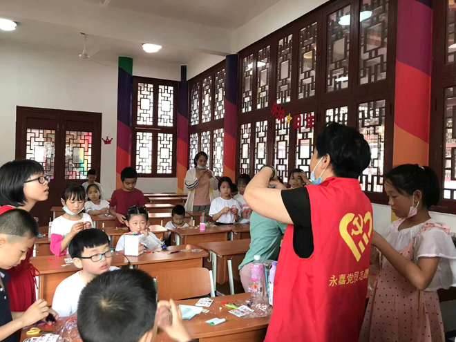 下日川村村民從事旅游服務業(yè)的人居多,節(jié)假日、雙休日、寒暑假多是旅游旺季,“家中小孩怎么帶”是村民們經常直面的難題。為此,該村建立了“校外教育輔導站”,為孩子們提供了一個課外知識的“充電場所”!拔覀冊阪(zhèn)組織辦的牽頭組織下,邀請廣大志愿者在節(jié)假日為青少年組織開展各類公益課堂、打卡紅色地標、聆聽紅色歷史,點亮孩子們的安全、多彩假期!敝苡烙呀榻B,該村還打造“一米陽光”兒童友好空間系列,在村辦公樓中設立“共享書吧”、“游樂室”“童議室”、“談心室”等兒童友好元素,每周開展一次由“童學薈”“童畫薈”“童游薈”等三大子活動組成的兒童公益活動,由村內的老黨員、志愿者帶領,一起學習,讓家長們放心、讓孩子們開心。