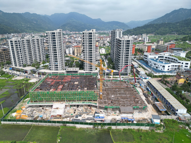 記者在項目現(xiàn)場看到,近200名施工人員分散在兩幢大樓主體各處進行混凝土澆筑與鋼筋綁扎,將建設(shè)5層的文化活動中心大樓、會議中心大樓已分別完成3層與2層,預(yù)計今年國慶節(jié)前主體結(jié)構(gòu)結(jié)頂,春節(jié)前完成中間結(jié)構(gòu)驗收,明年年底前完成交付。據(jù)了解,橋頭鎮(zhèn)文體中心建設(shè)工程(一期)位于橋頭鎮(zhèn)中心幼兒園旁,項目總投資約1億元,總建筑面積約1.6萬平方米。