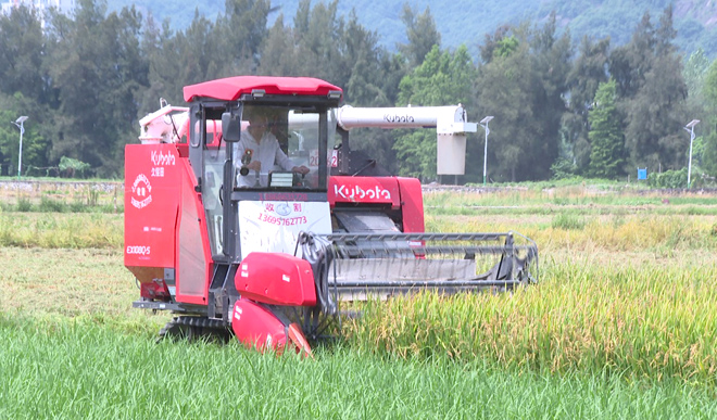 在三江街道箬隆村的500畝水稻種植基地,金黃色的稻浪隨風起伏,收割機轟鳴作業(yè),高效地將沉甸甸的稻穗收入囊中。麥盛農業(yè)開發(fā)有限公司負責人陳松元告訴記者:“再過兩天,這500畝早稻就能全部收割完畢,緊接著將開始種植晚稻,那邊一片晚稻田已經開始了種植工作!