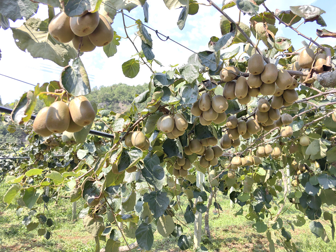 據(jù)高云燕介紹,每年3月底至4月初,約10天左右的盛花期,是一年中最需要人手和忙碌的時(shí)候,需要從村附近招募5—10名工人,每天工作6小時(shí)。受天氣的影響,工人要搶在晴好天氣,進(jìn)行人工授粉。當(dāng)食客問(wèn)到高云燕家的獼猴桃為什么特別甜時(shí),她認(rèn)為是施肥管理科學(xué),每年除了購(gòu)買施用商品有機(jī)肥,培育中期還會(huì)施磷肥,后期施鉀肥,保證獼猴桃的甜度。果實(shí)成熟后仍不能松懈,持續(xù)的高溫天氣會(huì)給果實(shí)帶來(lái)災(zāi)害,動(dòng)物啄食,產(chǎn)生果損。與搶抓上市的果農(nóng)的做法不同,該果園獼猴桃到8月底再招徠客戶,此時(shí)的獼猴桃?guī)Щ丶,軟硬、口感正合適。