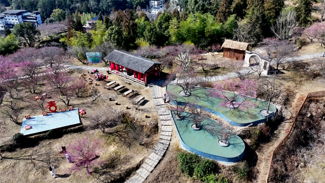 今年,梅園村還充分挖掘懸崖、古梅、山澗等自然資源,圍繞“三世三生十里梅花”主題,打造了三世清泉、紅梅之鏡、青瓦梅墻等19個打卡點。游客不僅能領(lǐng)略萬株梅花競艷的熱鬧景象,還能體驗別樣的三生三世十里梅花浪漫風情。據(jù)梅園村黨總支部書記陳丐忠介紹:“村里的道路更加好走了,打卡點多了,環(huán)境提升了,相信游客可以在梅待得更久了!痹啻蝸砻穲@賞花的游客柯女士驚喜地發(fā)現(xiàn)了梅園的變化:“以前交通不是很方便,現(xiàn)在不僅路寬了,停車也多了!