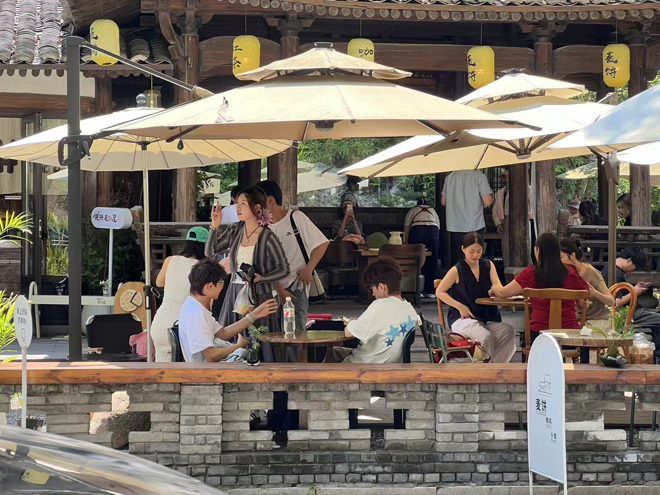在大若巖鎮(zhèn),不僅有熱鬧的游園會,旁邊的“咖啡一條街”也成為年輕人熱捧的消費點。在陶公洞旁,隱于綠茵之間的“木林森”咖啡館,這幾日客流量劇增。咖啡館相關(guān)負責人表示,為迎接端午與六一的雙節(jié)客流高峰,門店提前開啟籌備模式:上新飲品、開設(shè)演出、增配店員,全面提升店鋪的服務(wù)水平!拔沂窃谏缃黄脚_上看到這里的推薦,被這里的風景和氛圍吸引過來的。平常我就喜歡喝咖啡,這里的環(huán)境和咖啡都特別對我胃口,在游玩之余能有這樣一個愜意的地方休息,感覺很棒!币晃粍倧牡昀锍鰜淼挠慰完愊壬f道。