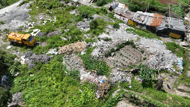 “以前也用鐵皮、網(wǎng)圍過,圍起來的時候干干凈凈的!币晃淮迕裰钢盏剡吘壵f,可后來圍擋材料頻頻被村民私自拆走挪用,“鐵皮拿去搭棚子,網(wǎng)子拿去圍菜園,根本攔不住!笔チ烁綦x設(shè)施,這里逐漸成了附近村民傾倒垃圾的“首選地”——裝修剩下的碎石、拆房后的廢磚,甚至施工殘留的砂石,都被源源不斷地運到這里丟棄。有村民坦言:“眼睜睜看著越堆越多,卻沒人管,再這樣下去真要成大垃圾場了!