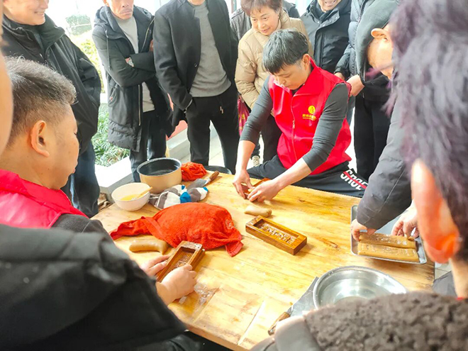 活動現(xiàn)場,40個特色攤位依次排開,熱氣騰騰的本地小吃、琳瑯滿目的年貨商品,與非遺手工藝展示相映成趣,市井煙火氣撲面而來。人氣最旺的當屬傳統(tǒng)搗年糕體驗區(qū)。捶搗聲、歡笑聲交織,市民排起長隊,爭相領取或親手制作這份帶著溫度的新春祝福!澳曦浌(jié)擺攤好,對群眾帶來方便!”施大爺用地道的溫州話點贊道。
