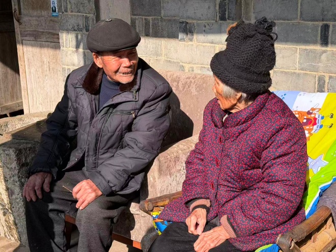 暖陽斜照,清風微拂,歲月的溫柔在我縣沙頭鎮(zhèn)呈坑村的一處院落里靜靜流淌。103歲的金巖竹與100歲的潘錦省兩位百歲老人,相互依偎著坐在門口的椅子上,沐浴著冬日里最暖的陽光,神情安然恬淡。記者看到,眼前的院落收拾得干凈利落,墻角整齊碼放著幾堆柴火,都是75歲的大兒子潘統(tǒng)川特意從后山砍來的,長短裁切得均勻規(guī)整,方便取用?諝庵袕浡窕鸲训牟菽厩逑悖熘鴫悄嗤僚c陽光的味道,伴著遠處村落隱約的犬吠聲,七十年多的相濡以沫、兒女繞膝的孝親溫情,在這個小山村里的尋常小院中慢慢漾開,勾勒出一幅最動人的晚年生活圖景。