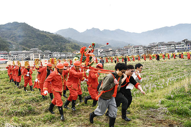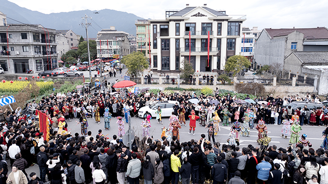 對(duì)八里村村民而言,龍燈盛會(huì)是一年一度的民俗盛宴,年輕一代主動(dòng)參與傳承,熱鬧的氛圍也吸引著周邊村落群眾前來共赴這場(chǎng)傳統(tǒng)之約。據(jù)悉,八里村舞龍燈習(xí)俗始于明朝萬歷年間,至今已有400多年歷史,其中永嘉蝦蛄龍舞于2016年被列入第十批溫州市非物質(zhì)文化遺產(chǎn)名錄,成為當(dāng)?shù)孛袼孜幕孽r明標(biāo)識(shí)。該村龍燈盛會(huì)固定在每年正月初八舉辦,承載著村民們祈求來年風(fēng)調(diào)雨順、國(guó)泰民安的美好心愿。