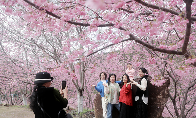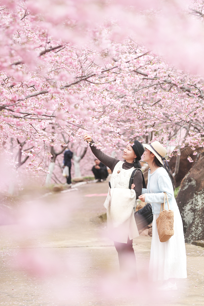 一花綻放,百業(yè)興榮。櫻花不僅扮美荒山,更滋養(yǎng)鄉(xiāng)鄰,讓貧瘠的土地長(zhǎng)出“致富花”。櫻花園牽頭搭建起土地流轉(zhuǎn)租金、旅游收入分紅、農(nóng)產(chǎn)品銷售及邊角地停車場(chǎng)收益等多元利益共享機(jī)制,讓周邊村集體年均收入增長(zhǎng),農(nóng)戶人均年收入提升約30%,讓鄉(xiāng)親們?cè)诩议T口就能吃上“旅游飯”,實(shí)現(xiàn)“守著綠水青山,收獲金山銀山”的美好愿景。與此同時(shí),櫻花園的火爆,也帶動(dòng)周邊民宿、農(nóng)家樂(lè)、竹排漂流等相關(guān)業(yè)態(tài)蓬勃發(fā)展,輻射帶動(dòng)嶺上人家等區(qū)域協(xié)同發(fā)展,一片花海,真正激活一方山水經(jīng)濟(jì)。